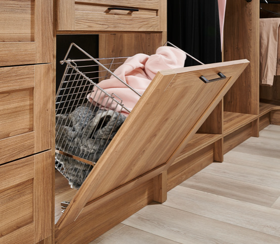 - Integrated Laundry Hampers - pull-out or tilt-out hamper systems with removable liners for discrete laundry management