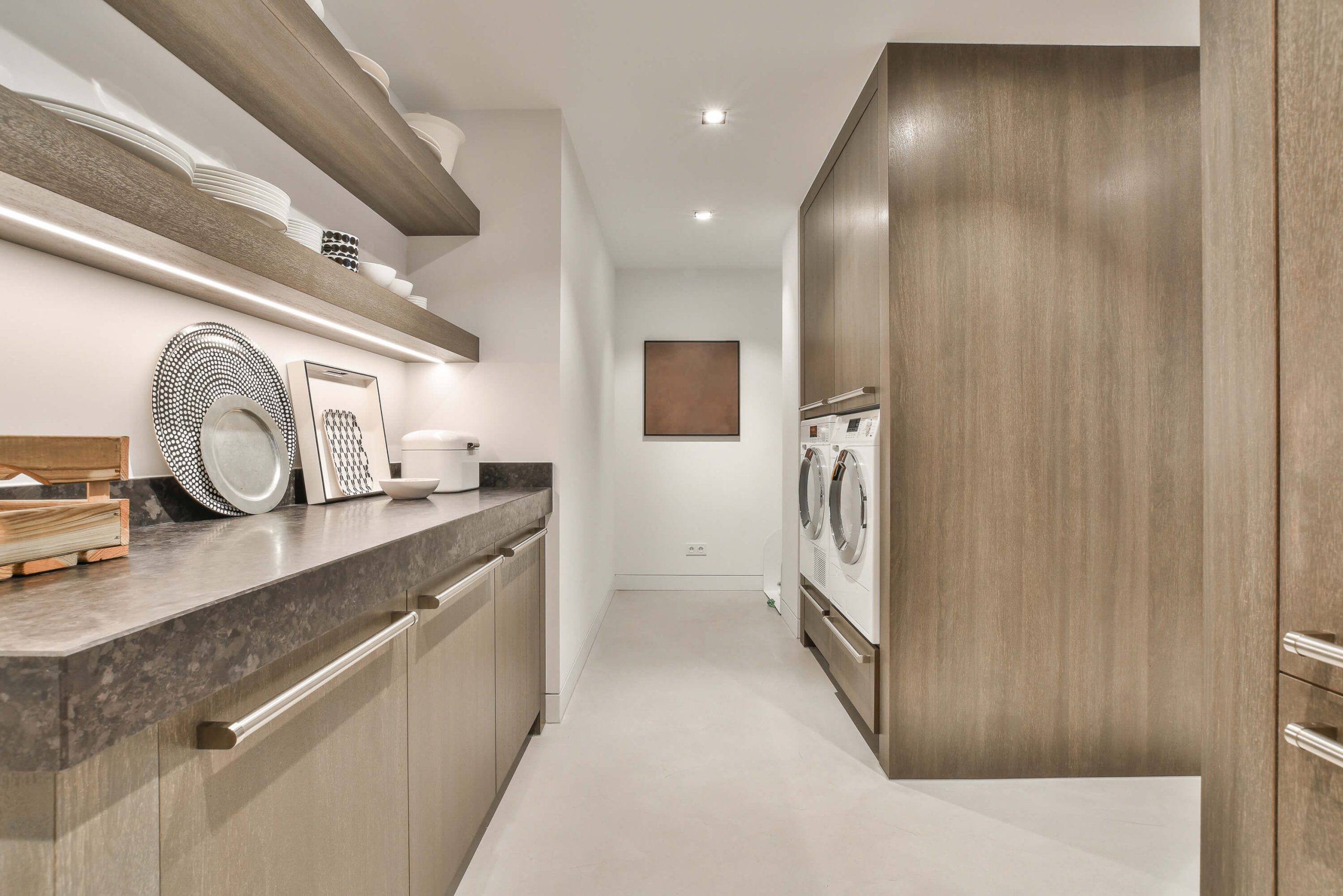 - Cabinets and Shelving:Â Maximize your storage space with custom cabinets and shelving units. Store detergents, cleaning supplies, and other essentials neatly out of sight while keeping them easily accessible.